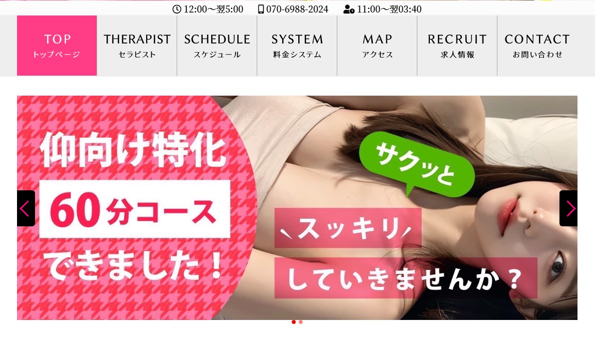 - セラピストとの個人的な連絡先交換や外へのお誘い、他店様の引抜きを目的とした行為は堅くお断りいたします。