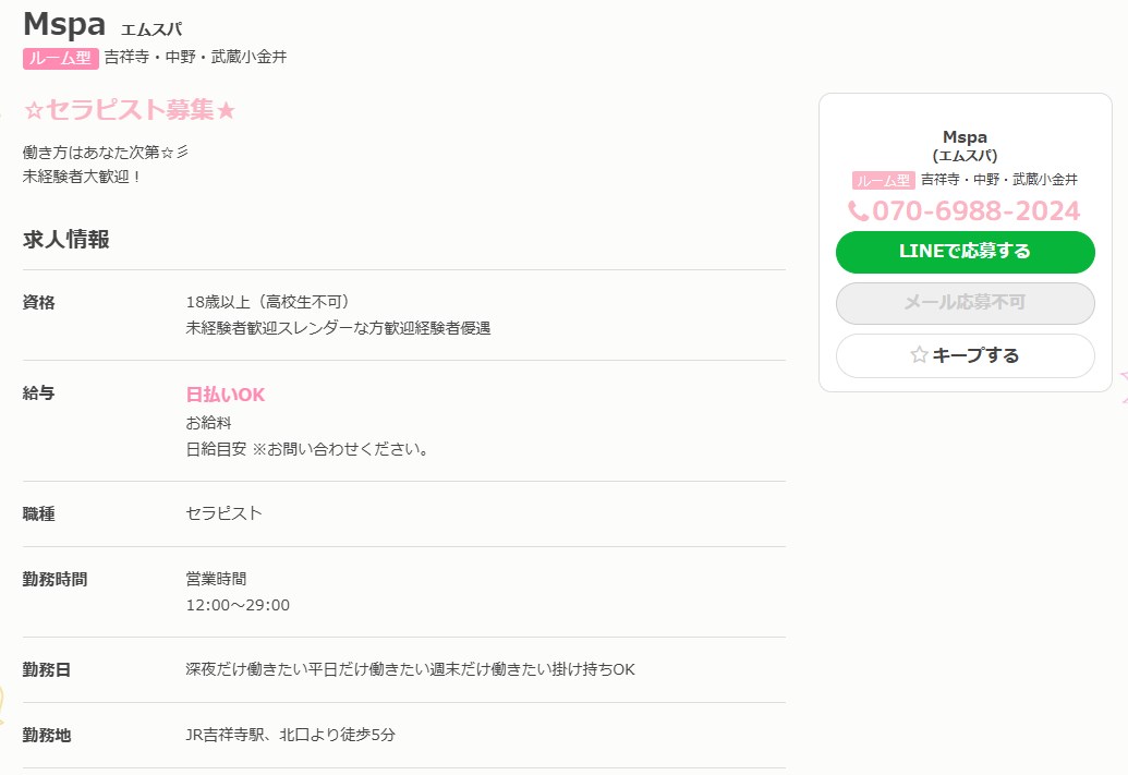 | 業種 | メンズエステ(※風俗店ではございません) |
